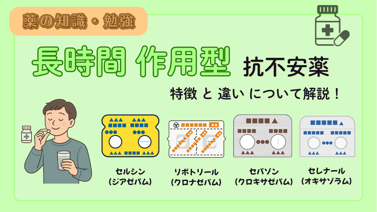 【薬剤師向け!】長時間作用型ベンゾジアゼピン系抗不安薬の比較!セルシン・リボトリール・セパゾン・セレナールの違いを徹底解説! 2025.10.20 精神科 フリーランス薬剤師 ハル フリーランス薬剤師の羅針盤