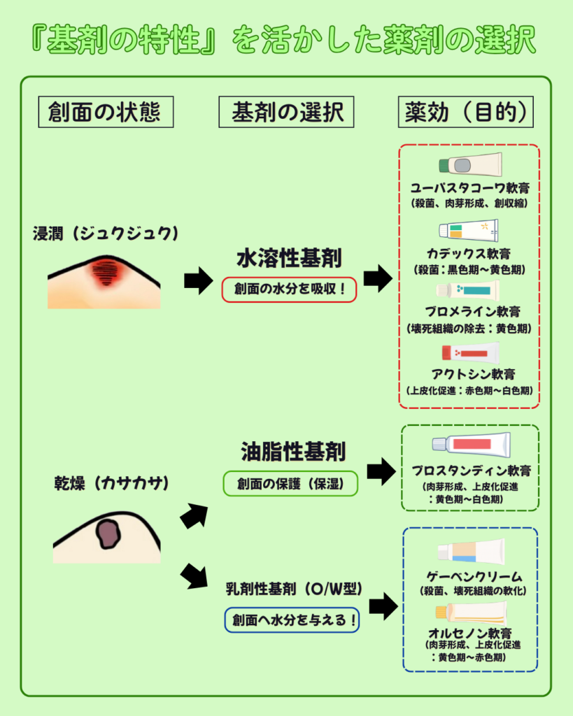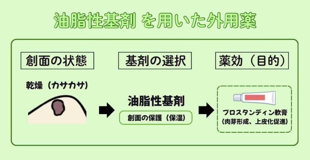 油脂性基剤は『乾燥した創面』に使用することが多いです!