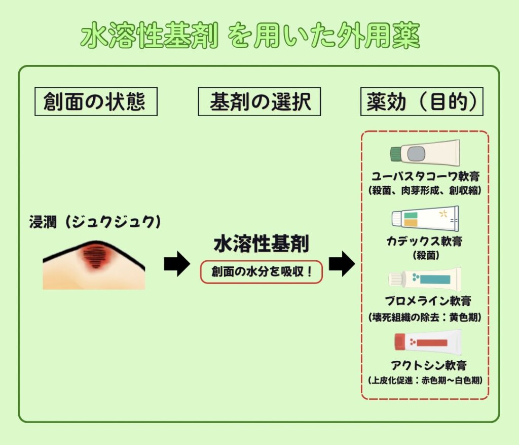 水溶性基剤は『過剰な創面』に使用することが多いです!